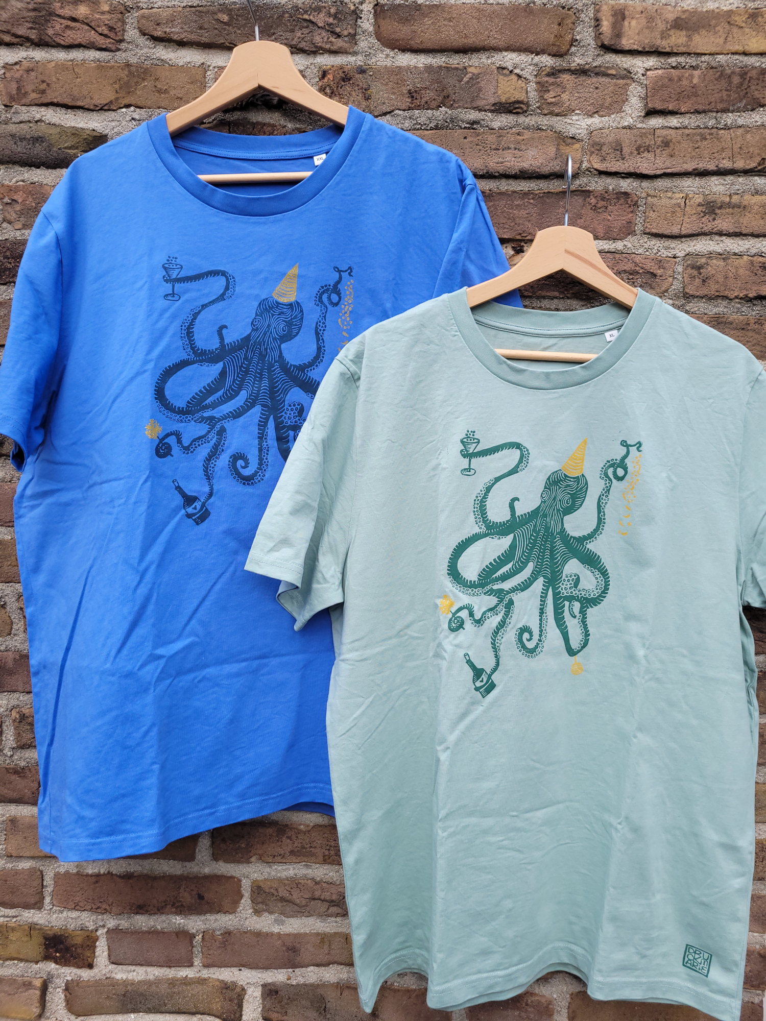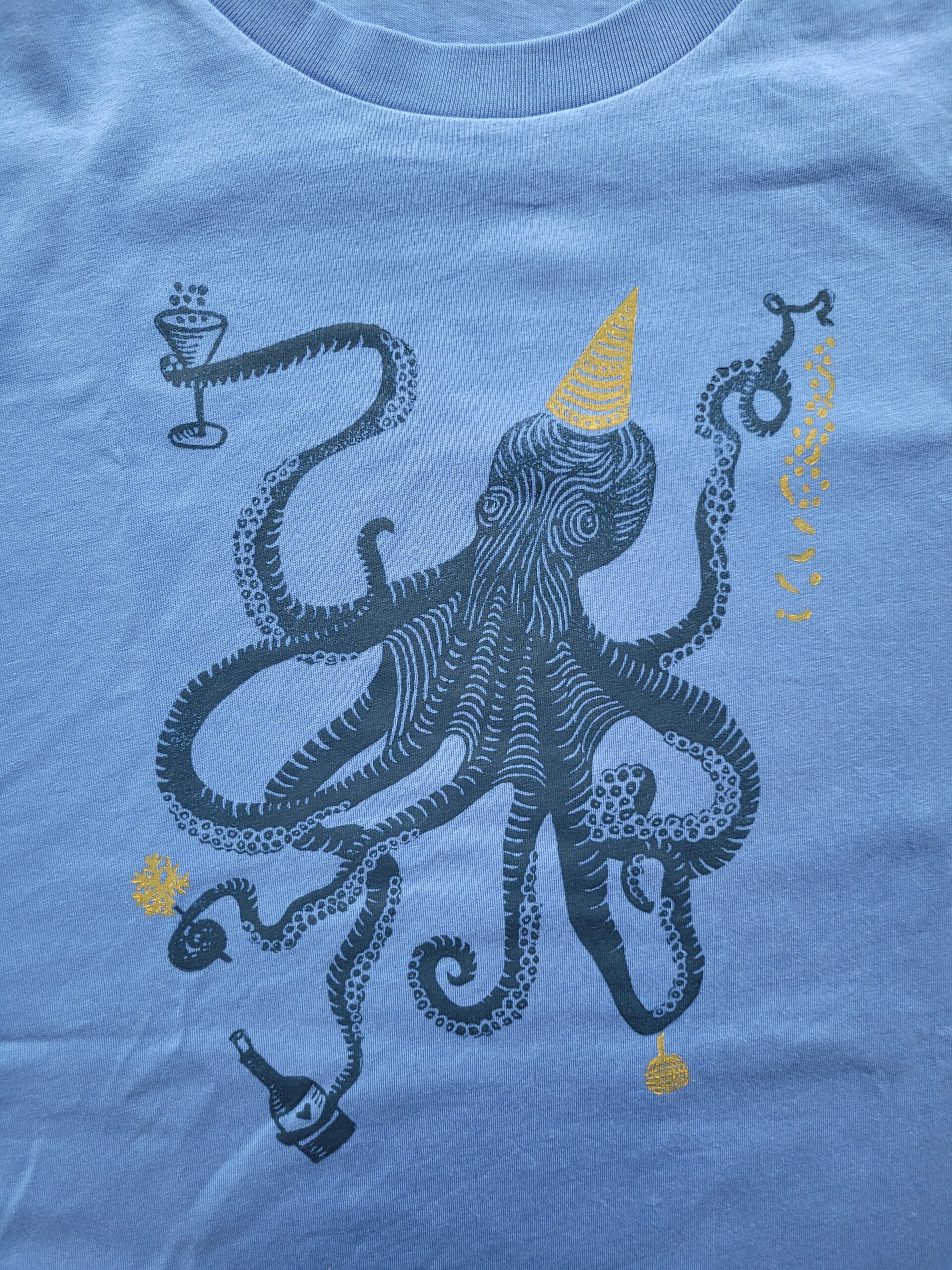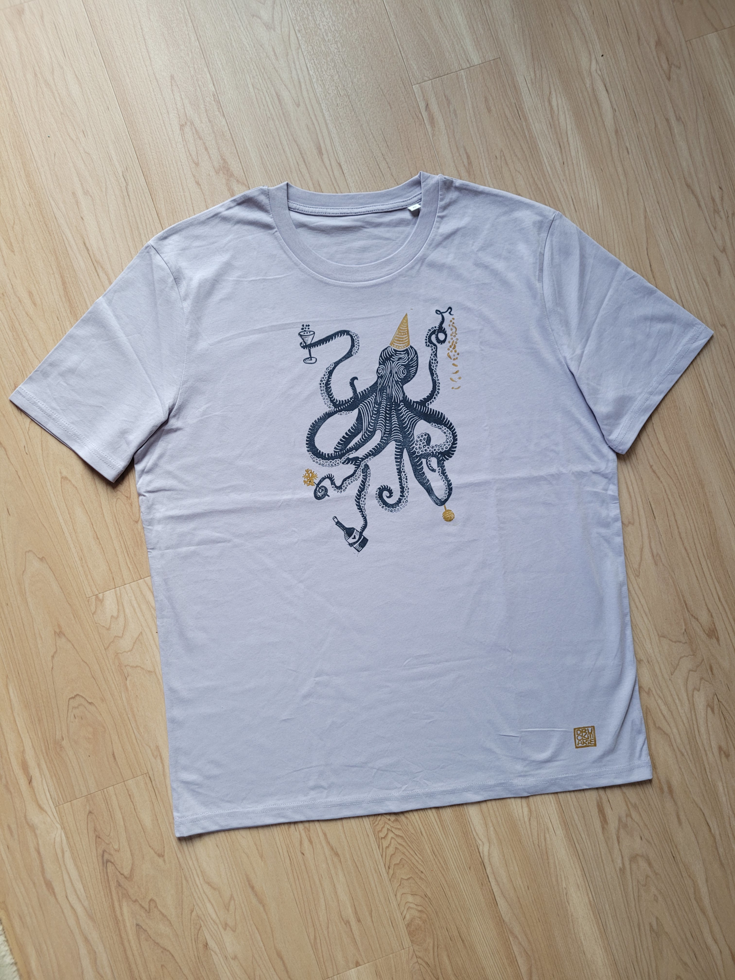 T-Shirt für Erwachsene, unisex, mit tanzendem Tintenfisch, aus Biobaumwolle, fair produziert und handbedruckt. Falls deine Größe nicht hier angeboten wird oder dir die Farben nicht gefallen, schreib mir gerne eine Nachricht.