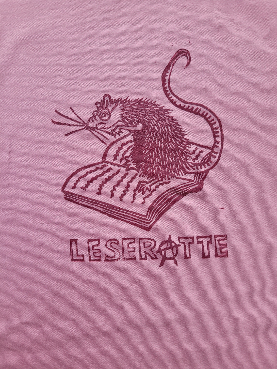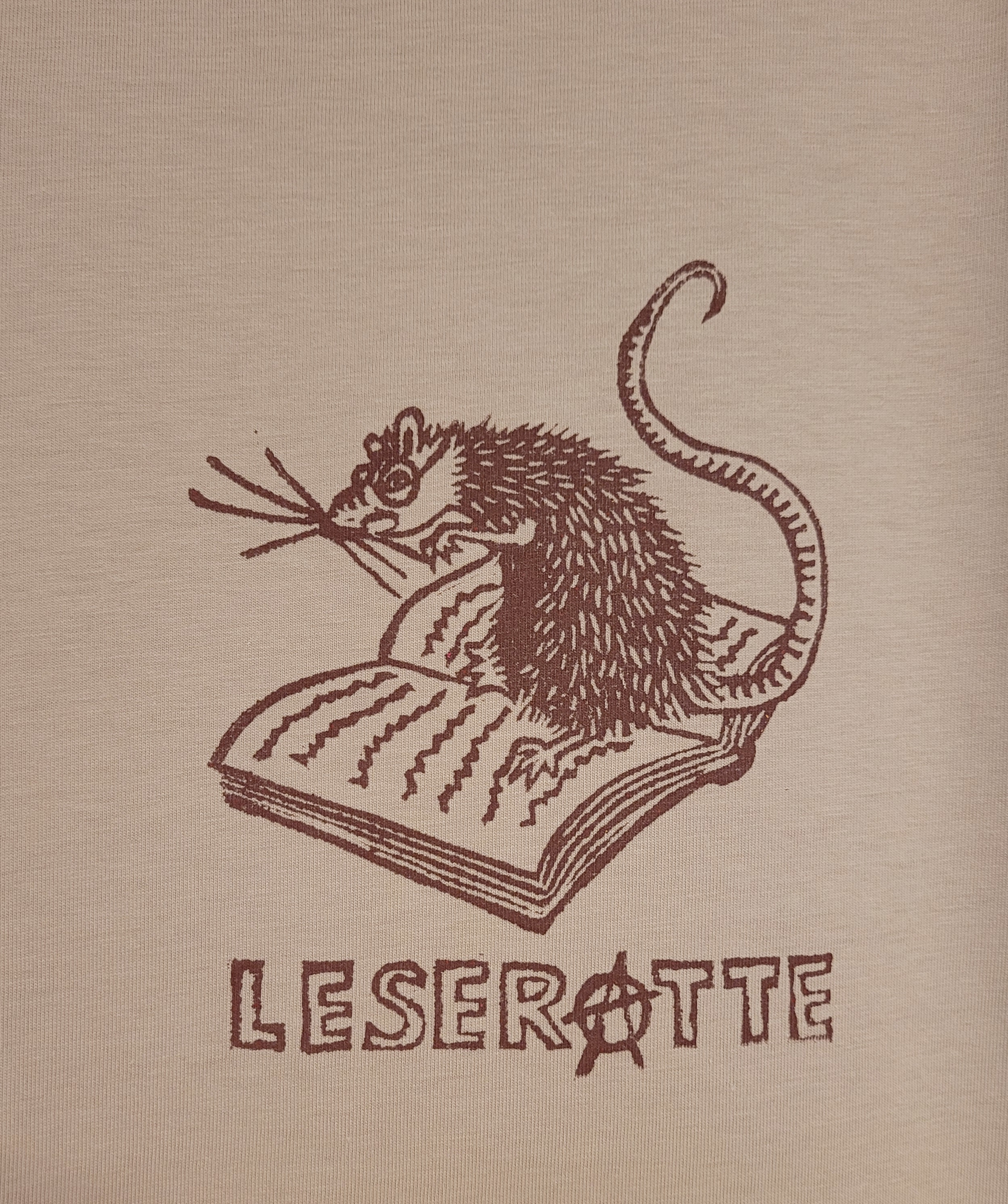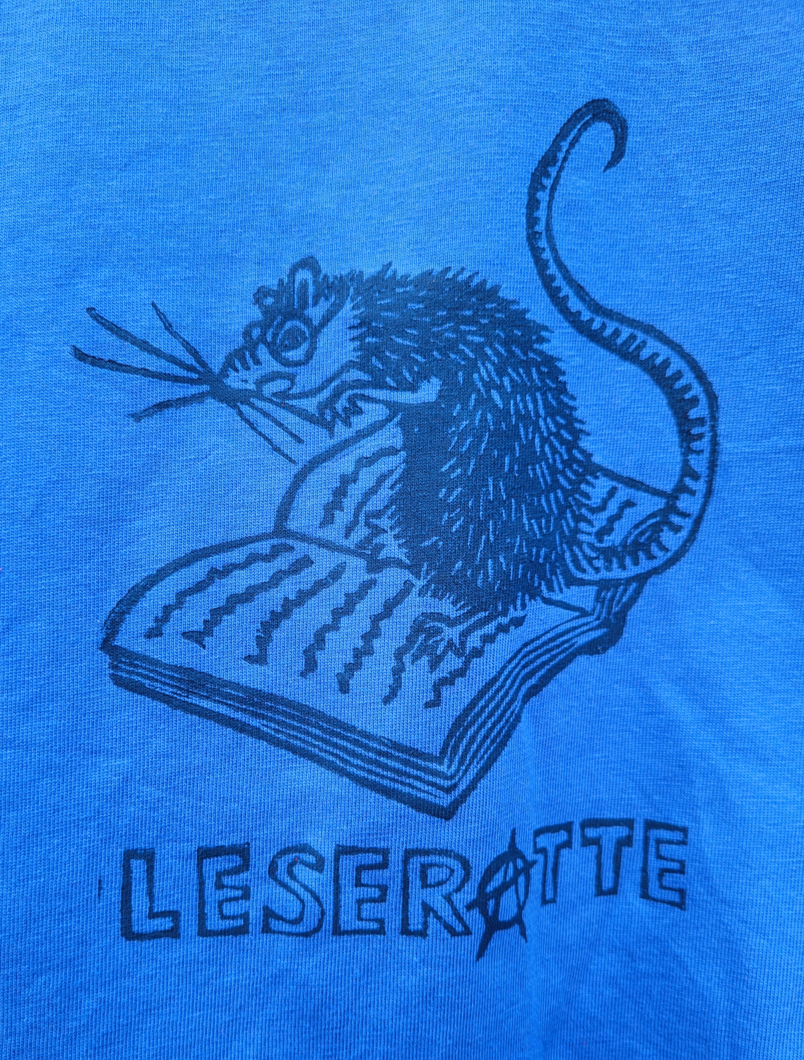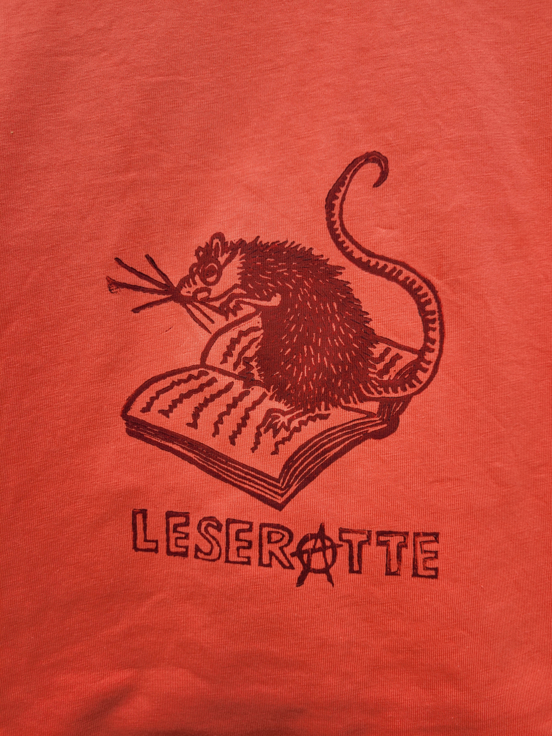 Alter, Geschlecht und Herkunft egal, viele Leseratten bilden eine Leserotte, das weiß man ja. Das ist ein Druck für alle, die Teil der Rotte sind: die Untergrundleser*innen, Bücherpunks und den literarischen Widerstand. Dieses Shirt will eure Uniform werden.