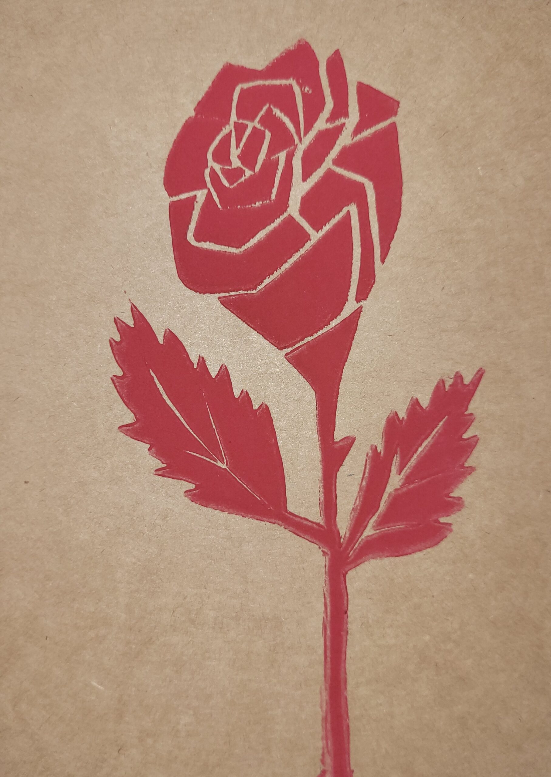 Das Motiv ist mit einem selbstgeschnitzten Vinylstempel auf eine Postkarte aus braunem Kraftpapier (300g/m², 100% recycelt) gedruckt. Sie hat A6-Format (14,8 x 10,5 cm). Jedes Exemplar ist ein handgefertigtes Unikat, kleinere Unterschiede in der Ausführung sind daher Teil des Charmes.
